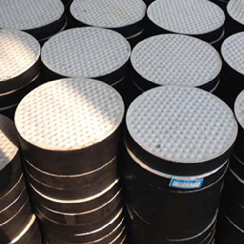 - 圓板式橡膠支座由若干層橡膠片與薄鋼板經(jīng)加壓硫化而成。有足夠的豎向剛度,滿足垂直荷載,同時具有良好的彈性以適應(yīng)梁端的轉(zhuǎn)動。具有較大的剪切變形以滿足上部構(gòu)造的水平位移;并且具有良好的防震作用,可減輕動載對上部構(gòu)造與墩臺的沖擊作用。構(gòu)造簡單,安裝方便,價格低廉,養(yǎng)護簡便,易于更換。