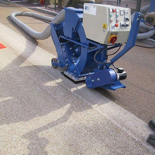 - 拋丸機(jī)按照預(yù)定的行走速度和拋丸參數(shù)進(jìn)行作業(yè),將鋼丸等磨料高速拋射到橋面混凝土表面。