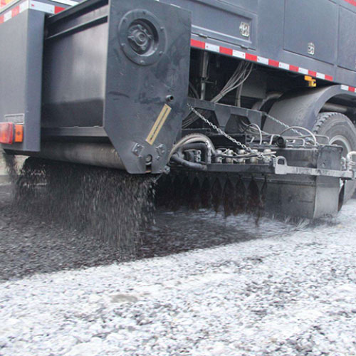 所謂同步碎石封層,就是用專用設(shè)備即同步碎石封層車將碎石及粘結(jié)材料(改性瀝青或改性乳化瀝青)同步鋪灑在路面上。同步碎石封層最大的優(yōu)點就是縮短了粘接劑噴灑與集料擻布之間的時間間隔,增加了集料顆粒與粘結(jié)劑的覆蓋面積,更易保證他們之間穩(wěn)定的比例關(guān)系,能使瀝青和石料的粘結(jié)牢靠,起到“落地生根”的效果,特別是在氣溫較低時施工效果比分體式碎石封層(即瀝青灑布+石料撒布)更為明顯。其次同步碎石封層提高了作業(yè)效率,減少了設(shè)備配套,降低了施工成本。瀝青路面經(jīng)過同步碎石封層處理后,使路面具有良好的抗滑性能和防滲水性能,能有效治愈路面貧油、掉粒、輕微網(wǎng)裂、車轍、沉陷等病害,主要用于道路的預(yù)防性養(yǎng)護和修復(fù)性養(yǎng)護,無論是高速公路還是普通公路都可以使用此項養(yǎng)護新技術(shù)。